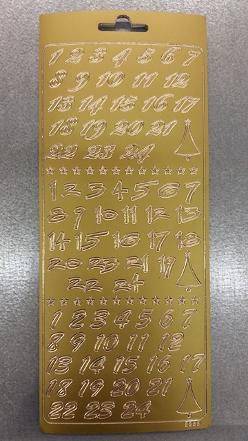 Ääriviitavarra-arkki, joka soveltuu hienosti omien joulukalenterien numerointiin. Arkki sisältää kolme settiä numeroita 1:stä 24:ään. Nueroseteistä kaksi on keskenään samanlaisia ja kolmas on erilainen. Numeroiden korkeus n. 10-15mm. (TE5)