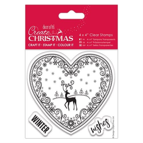 Akryylipalaan kiinnitettävät leimasimet; koristeellinen sydän (noin 9x9cm) sekä pienet sanat; Winter sekä Wishes. (TE3)