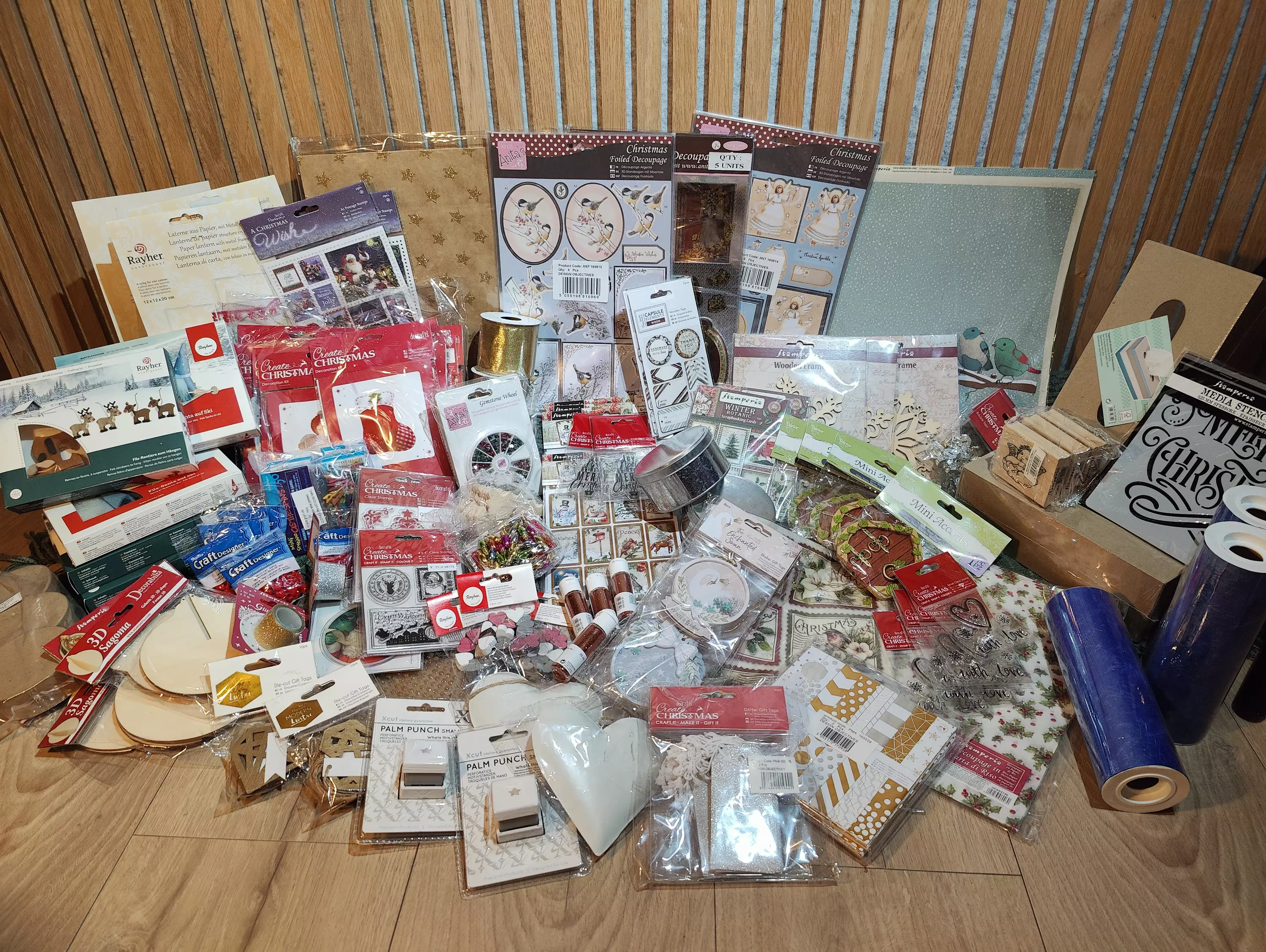NETTOHINTAINEN TUOTE, TE1 (ei tukkualennuksia) Huikein pakettitarjous ikinä - nämä myydään alle sisäänostohinnoin! Menneiden Joulujen Aarteet 1 -paketti sisältää ulosheittohintaan reilun valikoiman joulutuotteita menneiltä jouluilta. Paketista löytyy niin korttiaskartelijalle kuin perinteisemmällekin tuunaajalle sopivia tarvikkeita, sekä myös lahjaksi soveltuvia artikkeleita. Kutakin tuotetta on paketissa maltillinen myyntierä, joten tämä paketti sopii parhaiten jälleenmyyjille - miksei toki askartelevalle kaveriporukallekin jaettavaksi, tai pilkottavaksi pienemmiksi joululahjoiksi useammalle saajalle! HUOM: muutamista yksittäisistä tuotteista saattaa löytyä hintalappu. Kuvista löydät listat paketin sisällöstä ja kappalemääristä. Joistain tuotteista löydät tarkempia tietoja koodin avulla verkkokaupasta, mutta muutoin emme kuvaa tai mittaile paketin tuotteita enempää kuin kuvista ja selosteesta on nähtävissä.
