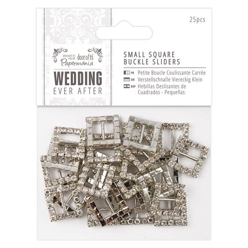 Pakkaus sisältää 25kpl kimaltavia, strassitimantein koristeltuja metallisolkia, joiden läpi voi pujottaa n.9-10mm leveän nauhan. (TE1)