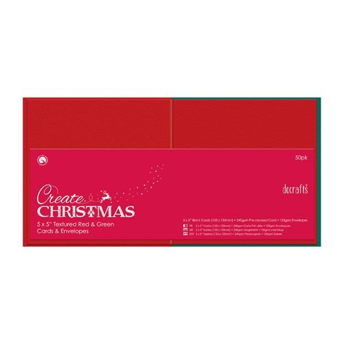 Kortit + kuoret neliö 50kpl, puna-vihreä 240g kuviopintaiset (13,5x13,5cm)