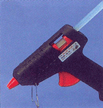 Askartelijan pienikokoisen lämpöliimapistoolin (ei siis kuuma-) liima ei polta sormia rakoille. Liima kuivuu 10-20 sekunnissa. Liima sopii lähes kaikille materiaaleille, jopa styroxille ja ilmapallon pintaan. Lasit, kirkaspintaiset metallit ja jotkut muovit vaativat pisaran kumpaankin pintaan tai kontaktiliiman. Käytä 7,4mm (8mm) liimapuikkoja. (TE1) Huom!!! Älä käytä kuumaliimapuikkoja. Ne eivät sula tässä lämpötilassa!