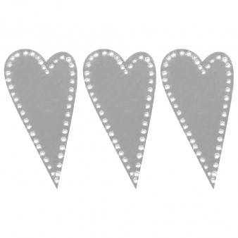 Viehättävät koristesydämet ohutta metallilevyä. Taustalla tarratyyny kiinnitystä varten. (TE6)