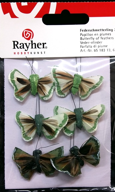 Pienet suloiset höyhenperhoset sopivat esim. kransseihin, kortteihin tai virpomisoksiin somisteiksi. Kätevän rautalangan avulla ne on helppo kiinnittää! (TE4)