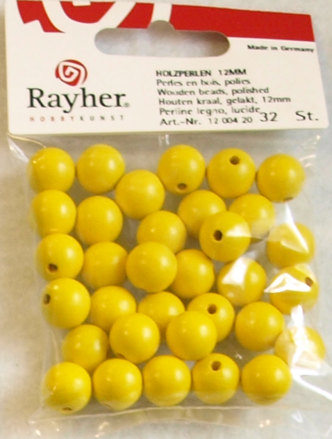 Puuhelmi, 12 mm, 32 kpl, keltainen