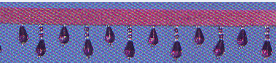 Kanttinauhasta riippuvat muovihelmet. Kanttinauhan korkeus n.1,2 cm. Esim. lampunvarjostimien reunaan tai laukkuihin. (TE6)
