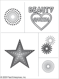 Pakkaukseen kuuluu tarrapohjainen painoseula sekä lasta värin levitykseen. Voit leikata kuviot seulasta erikseen ja asetella ne kankaalle mielesi mukaan. Katso tarkemmin Simply Screen ohjeesta. (TE3)