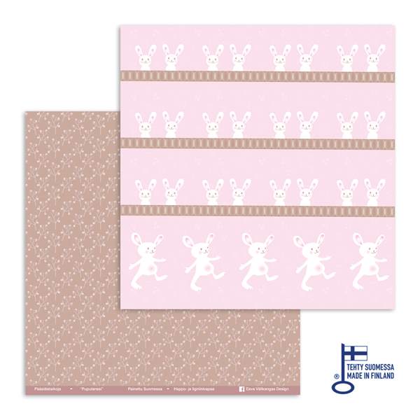 Kotimaiset Pääsiäistaikoja-sarjan skräppipaperit ovat Eeva Välikangas-Yli-Kosken käsialaa ja koska ne on myös painettu Suomessa, ovat ne ylpeydeksemme Avainlippu-tuotteita. Paperit ovat kaksipuolista ja mattapintaista 250g kartonkia. Paperit toimitetaan taivutettuna, mutta ei taitettuna. (TE10)
