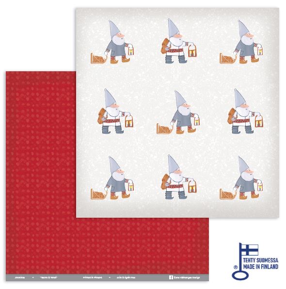 Kotimaiset Jouluiloa -sarjan skräppipaperit ovat Eeva Välikangas-Yli-Kosken käsialaa ja koska ne on myös painettu Suomessa, ovat ne ylpeydeksemme Avainlippu-tuotteita. Paperit ovat kaksipuolista ja mattapintaista 250g kartonkia. Paperit toimitetaan taivutettuna, mutta ei taitettuna. (TE15)