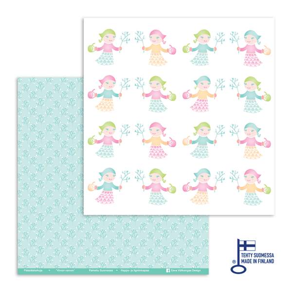 Kotimaiset Pääsiäistaikoja-sarjan skräppipaperit ovat Eeva Välikangas-Yli-Kosken käsialaa ja koska ne on myös painettu Suomessa, ovat ne ylpeydeksemme Avainlippu-tuotteita. Paperit ovat kaksipuolista ja mattapintaista 250g kartonkia. Paperit toimitetaan taivutettuna, mutta ei taitettuna. (TE10)