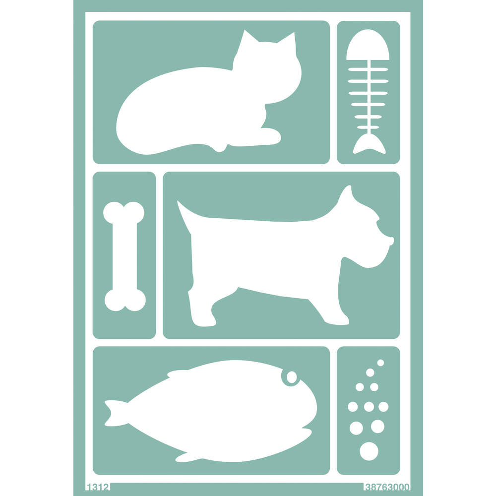 Arkki, johon tarrasabluunat on kiinnitetty, on A5-kokoinen. Sopivat hyvin käytettäviksi esim. liitutaulumaalien kanssa - sabluunolla saa maalattua vaikka pieniä liitutauluetikettejä. (TE1)